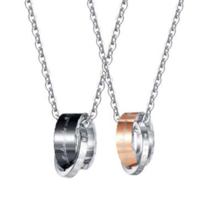 Aceste lănțișoare cu pandantive sub formă de inele din oțel inoxidabil sunt o modalitate minunată de a sărbători iubirea și angajamentul într-o relație de cuplu. Ele servesc ca amintire a legăturii voastre speciale și pot fi purtate cu mândrie pentru a arăta lumii dragostea și unitatea voastră.