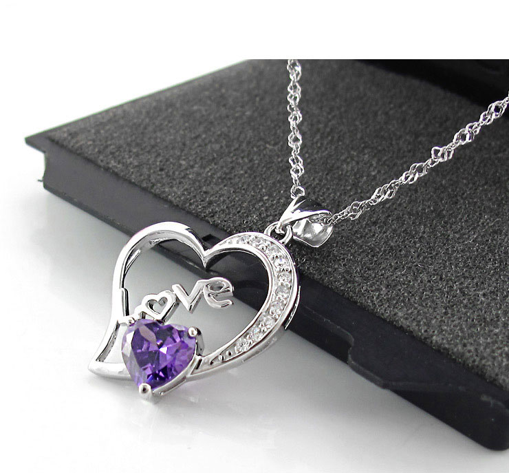 În centrul inimii, găsim o inimă mai mică din cristal mov, adăugând o notă de culoare și profunzime pandantivului. Acest cristal captează și reflectă lumina într-un mod subtil, oferindu-i un sclipit fermecător și o aură misterioasă. Deasupra inimii mov, este inscripționată cu eleganță cuvântul „Love”, adăugând o notă de semnificație și adâncime mesajului transmis de bijuterie.
