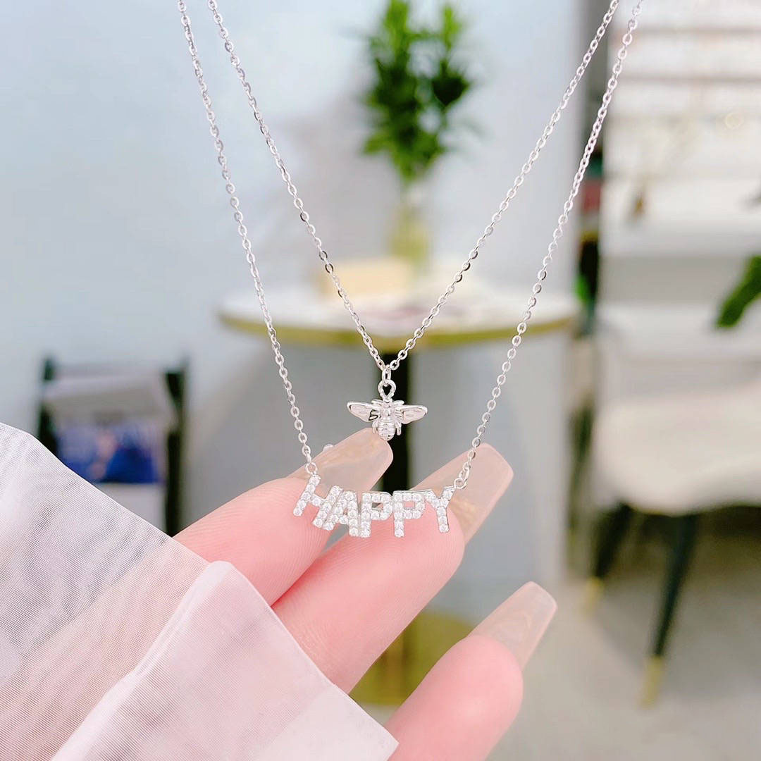 Primul lanț este ornamentat cu literele delicate care formează cuvântul „Happy”, subliniind mesajul pozitiv și vesel pe care bijuteria îl transmite. Fie că este o amintire personală sau un cadou special, acest detaliu adaugă o notă de optimism și fericire. Al doilea lanț prezintă o albinuță subtilă și fermecătoare ca pandantiv. Albina este simbolul muncii asidue, cooperării și dulcetelor rezultate ale eforturilor depuse. Această mică creatură adaugă un element ludic și natural întregii bijuterii, sporind farmecul și atractivitatea acesteia.