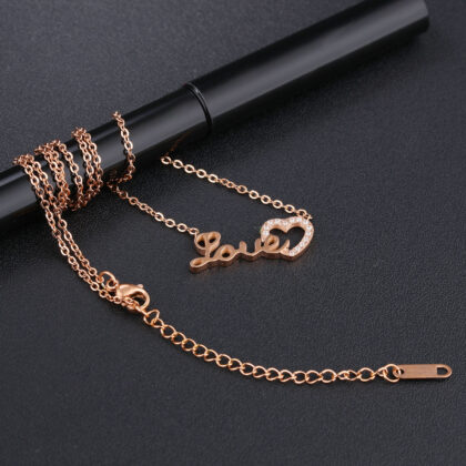 Lantisorul finut placat aur Love zirconiu reprezintă o bijuterie delicată și plină de semnificații. Lanțul, acoperit cu un strat de aur, susține un pandantiv ce combină inscripția „Love” cu o inimioară strălucitoare, ornamentată cu cristale din zirconiu, oferind un farmec subtil și afectuos colierului.