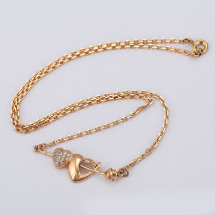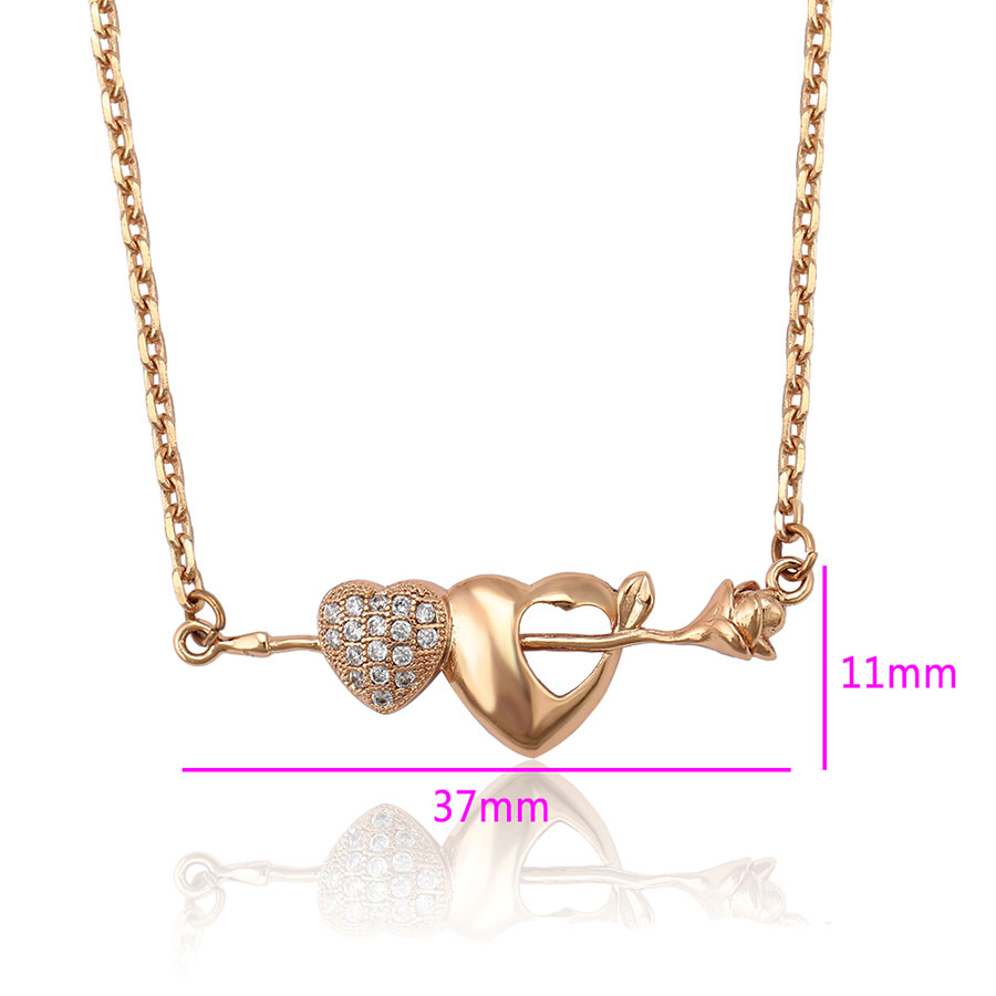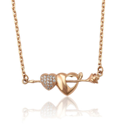 Pandantivul lantisorului reprezinta două inimioare strapunse de un trandafir care adaugă o notă de simplitate, romantism, și afecțiune. Este o bijuterie care poate să spună o poveste și să transmită sentimente profunde.