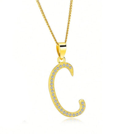 Lantisorul initiala C placat aur zirconiu reprezintă o bijuterie personalizată și strălucitoare. Lanțul subțire și elegant este acoperit cu un strat de aur, oferind un cadru strălucitor inițialei „C”, decorată cu cristale din zirconiu, aducând un farmec distinctiv și rafinat colierului.