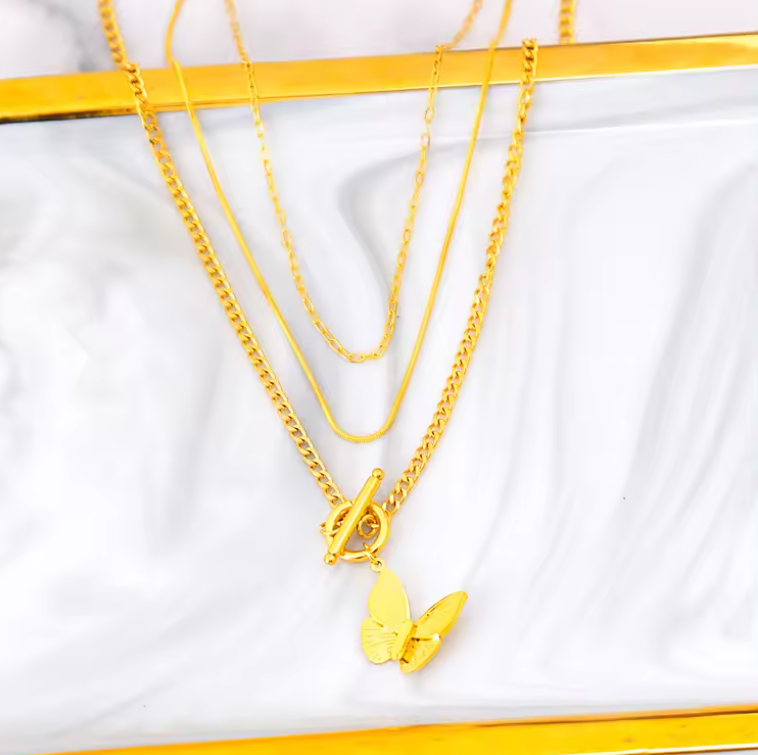 Lantisor multilayer placat aur Fine butterfly