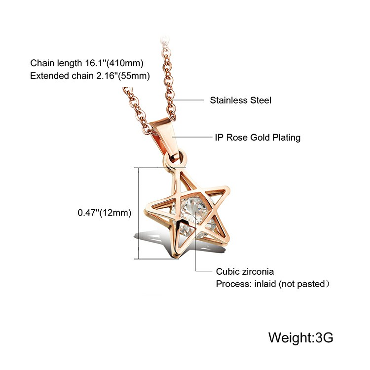 Pandantivul este modelat sub forma unei steluțe, ceea ce simbolizeaza visurile, aspirațiile sau strălucirea. Cristalul din zirconiu amplasat în mijlocul steluței aduce un plus de strălucire și rafinament întregii bijuterii. Prin reflexiile și jocurile de lumină ale cristalului, colierul devine o adevărată operă de artă, care atrage atenția și farmecă privirile celor din jur.
