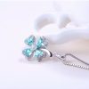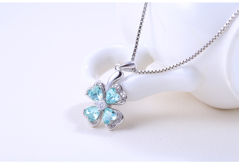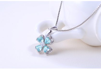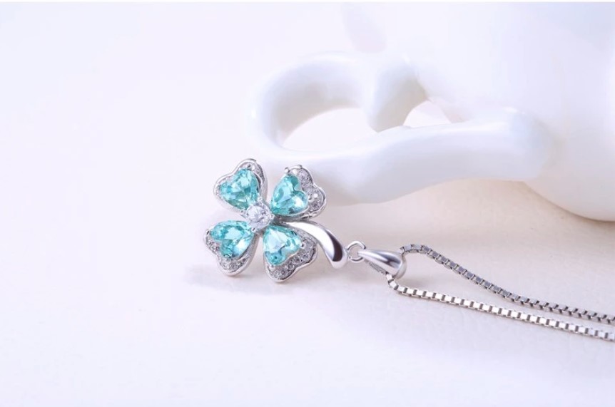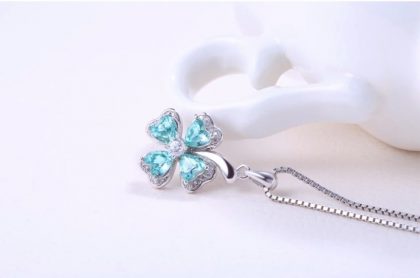 Lantisorul cu trifoi patru foi din argint 925 se potriveste atat stilului casual, de vacanta cat si celui de zi cu zi. Lantul colierului este subțire și elegant, menit să completeze cu grație medalionul și să îl pună în valoare. Medalionul are forma unui trifoi cu patru foi, un simbol tradițional asociat norocului. Fiecare dintre cele patru foi ale trifoiului este încrustată cu pietre zirconiu albe si turcoaz care adaugă o strălucire subtilă și eleganță.