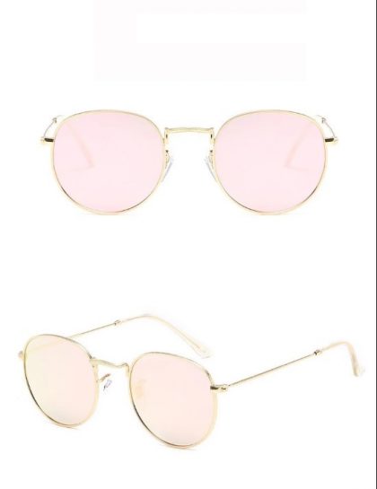 Ochelarii de soare dama cu lentile roz rotunde sunt un accesoriu ideal pentru sezonul de vara datorita lentilelor cu protectie UV400.