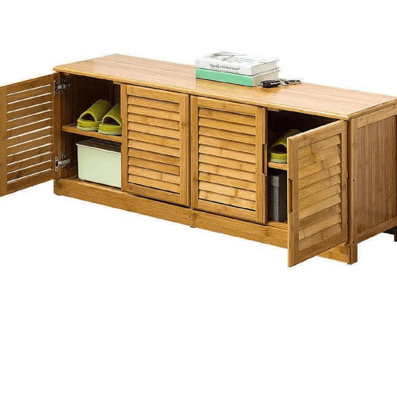 Pantofarul modern din lemn bambus reprezinta o piesa de mobilier cu design practic si atractiv, confectionat din lemn de bambus. Produsul este compartimentat, avand patru usi si rafturi pentru depozitarea pantofilor.