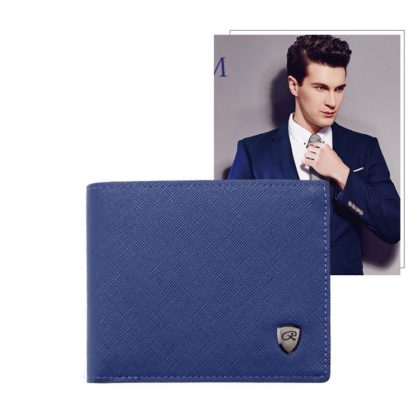 Portofelul de barbati are un design elegant si aspect frumos, de culoare albastru. Pe partea din fata este gravata sigla produsului de inalta calitate. Produsul are compartiment pentru bancnote cat si sloturi pentru card. Acest portofel din piele ecologica va fi un cadou excelent pentru barbatii de orice varsta.