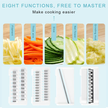 Razatoare multifunctionala este un ajutor care nu poate lipsi din bucataria dumneavoastra. Aceasta contine 11 piese, perfecte pentru fiecare sarcina in parte. Cu ajutorul diferitelor lame, care feliaza, taie, rad orice fel de alimente, gatitul va deveni o placere.