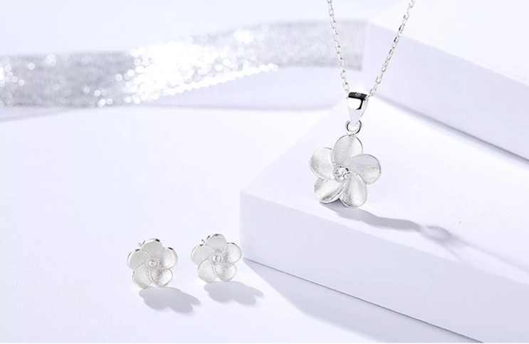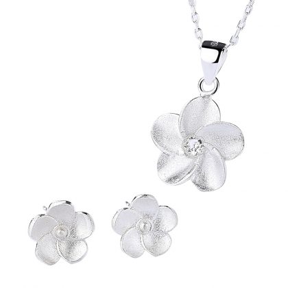 Cerceii din acest set sunt, de asemenea, în formă de floricică, menținând armonia și coerența întregului ansamblu. Acești cercei adaugă o notă jucăușă și romantică, în timp ce cristalul de zirconiu amplifică strălucirea bijuteriei. Setul este potrivit pentru a fi purtat în diverse ocazii, de la evenimente speciale și serate elegante, până la întâlniri romantice sau zile deosebite. Îmbinând eleganța formei de floricică cu strălucirea cristalului de zirconiu, acest set subliniază feminitatea și stilul purtătoarei, atrăgând admirația celor din jur.