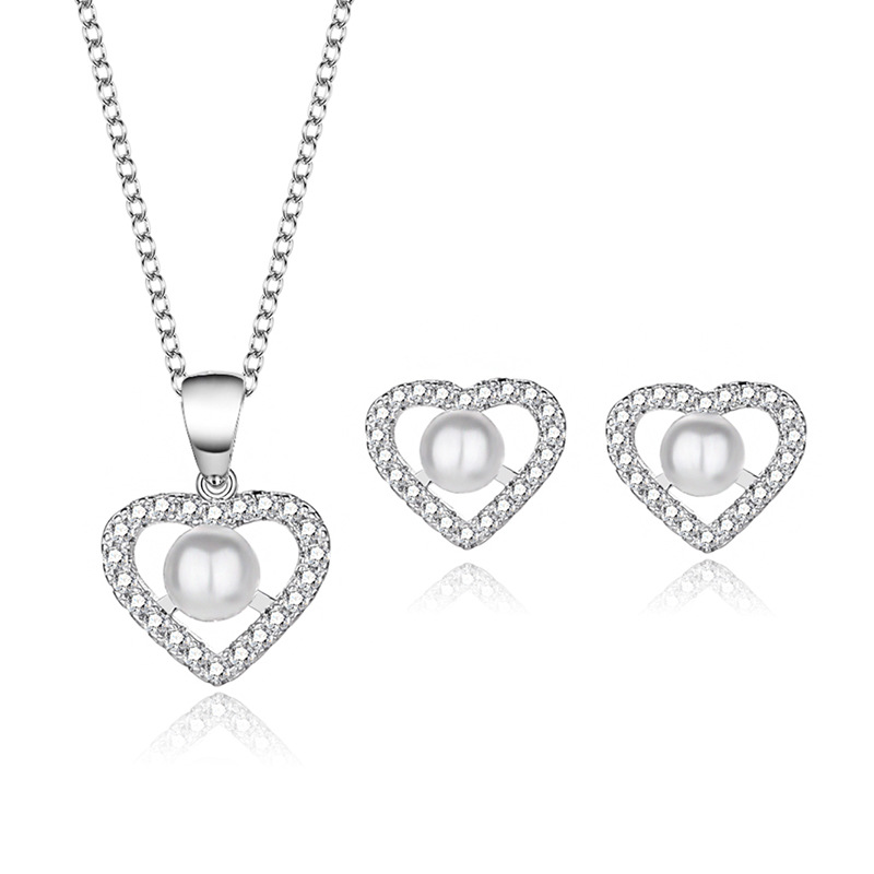 Colierul este o declarație de rafinament și feminitate. Inimioara în formă de argint ține în centrul ei o perlă, iluminând delicat întregul accesoriu. Inimioarele delicate din argint înconjurate de zirconiu adaugă o notă subtilă de romantism și feminitate. Cerceii asortați, completează perfect setul si sunt ușori și confortabili de purtat, perfecti pentru orice ocazie specială sau pentru a adăuga un plus de farmec zilnic.