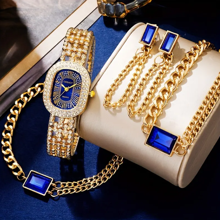 Setul pentru dama este format din ceas, bratara, colier si cercei asortati.  Acesta este un set deosebit care va completeaza perfect tinutele.
