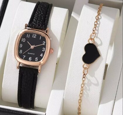 Acest set format dintr-un ceas cu neagru și o bratara din aliaj placat cu aur cu model inima neagra reprezintă o alegere potrivită pentru a exprima romantismul și dragostea. Cu detalii atent selecționate și un design echilibrat, acest set poate fi un cadou remarcabil.