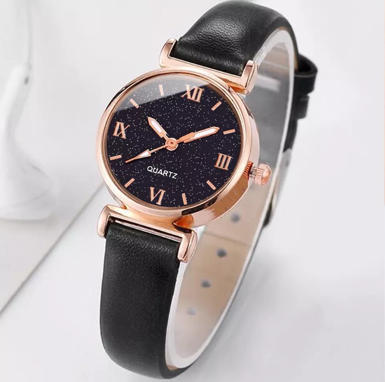 Setul ceas dama si bratari Diana este de un rafinament aparte, ce confera celei care il poarta o eleganta si un stil deosebit. Cureaua neagră adaugă un element clasic și versatil ceasului, oferind o notă de eleganță și sobrietate. Brățările sunt din aliaj placat cu aur și prezintă elemente negre care aduc un plus de eleganță.