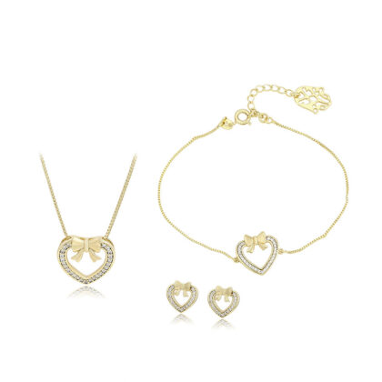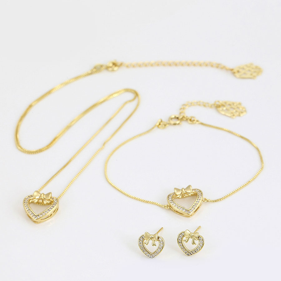 Setul colier bratara si cercei placat aur este un ansamblu elegant și strălucitor, conceput pentru a adăuga o notă de lux și rafinament oricărei ținute. Fiecare piesă din set este confecționată din aliaje comune, care este ulterior placat cu un strat subțire de aur, obținându-se astfel un aspect strălucitor și sofisticat.