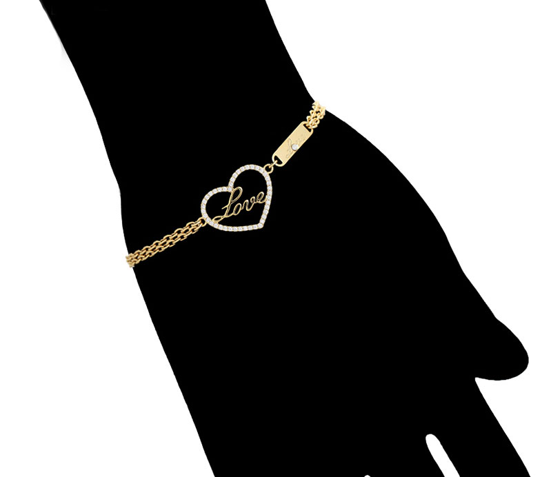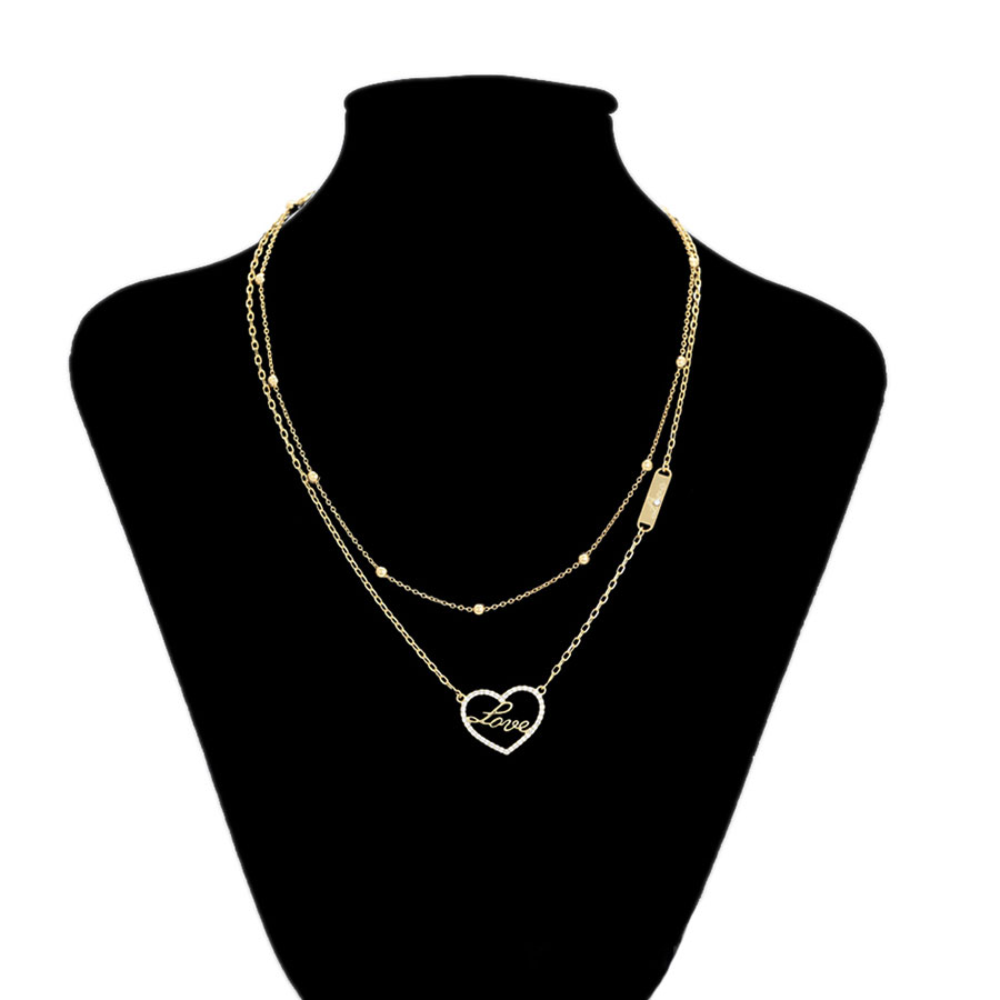 Colierul dublu din acest set prezintă un design subtil și rafinat. Inimioara, ca pandantiv are aplicat textul Love pe centru. Brățara este o combinație perfectă de subtilitate și strălucire. Ea este formată dintr-un lanț subțire, placat cu aur, cu o inimă similară celei de pe colier, care servește drept pandantiv. Cerceii din acest set sunt picături subțiri și delicate, care completează perfect colierul și brățara. Aceștia prezintă inimioare mici, suspendate cu gingășie de cârlige subțiri, astfel încât să atârne grațios de urechi.