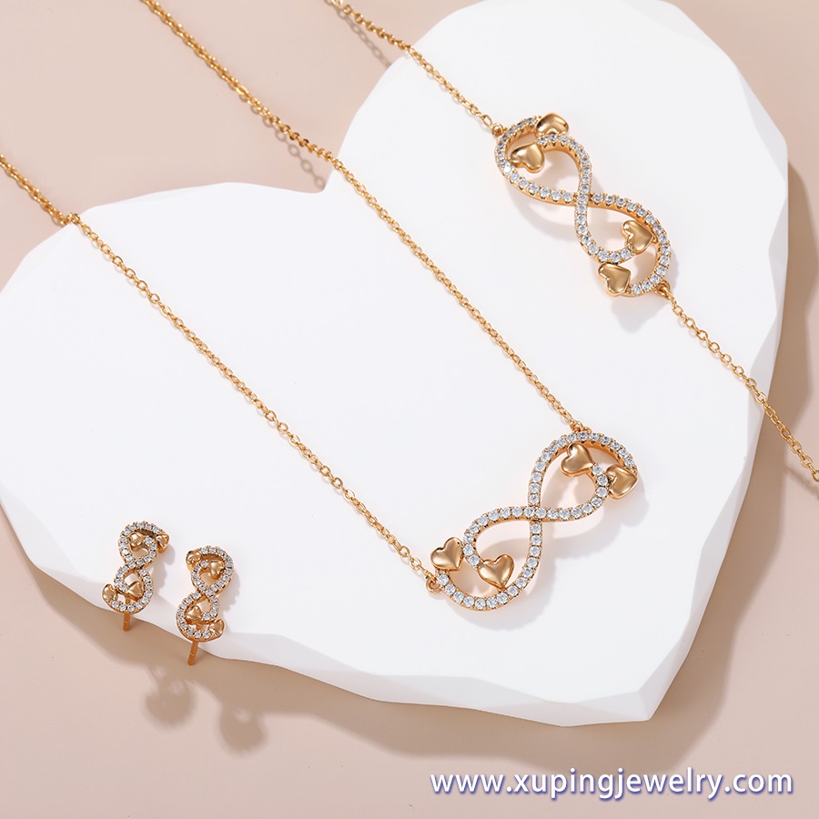 Set colier, cercei si bratara placat aur Infinity