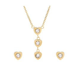 Colierul, cu o lungime ajustabilă, este decorat cu trei inimioare aurii care strălucesc ca un simbol al iubirii adevărate. În centrul inimioarelor se află un cristal sclipitor, care atrage privirile și emană o aură de mister și eleganță. Lantul colierului este plăcut la atingere și se așază cu grație pe gât, conferind un aspect rafinat oricărei ținute.