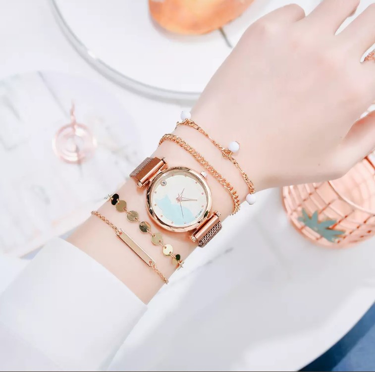 Setul dama ceas cadran pisicuta si bratari este de un rafinament aparte, ce confera celei care il poarta o eleganta si un stil deosebit. Brățările sunt placate cu aur de 18k oferind un aspect luxos și strălucire setului.