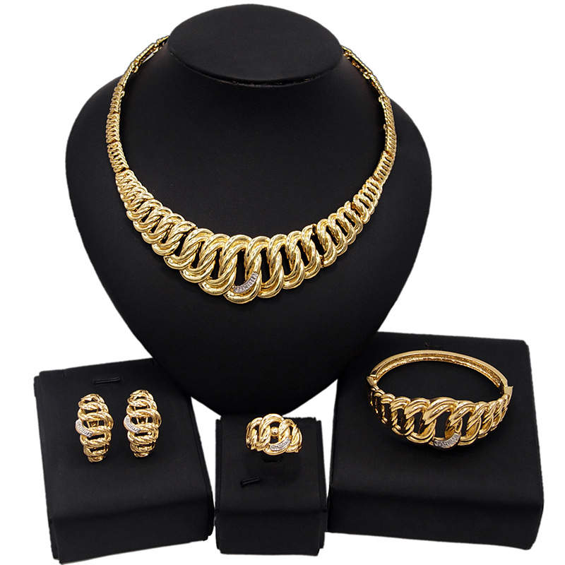 Setul placat aur colier, cercei, bratara si inel Goddess este un ansamblu rafinat și sofisticat, perfect pentru a completa orice ținută specială. Fiecare piesă din acest set este placata cu aur de 18k, conferindu-i un luciu strălucitor și o eleganță aparte.