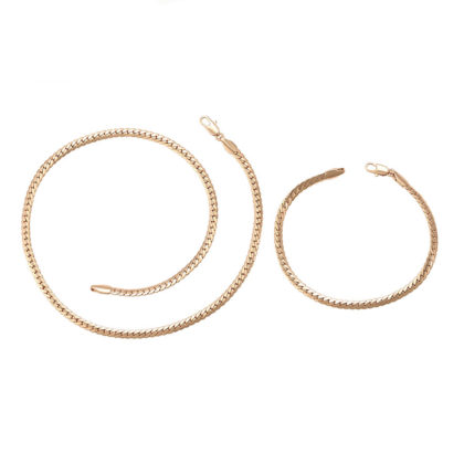 Setul placat aur elegant lantisor si bratara atrage atenția prin simplitatea sa rafinată. Ambele bijuterii sunt confecționate dintr-un amestec de aliaje comune, care emană o strălucire delicată și un farmec clasic.