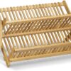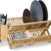 Suportul pentru vase va ajuta sa uscati vasele si sa economisiti spatiu in bucatarie. Realizat din bambus, un lemn foarte rezistent la umezeala, este prevazut cu raft superior pentru farfurii si vesela mare, un raft inferior pentru pahare sau cani si un suport pentru tacamuri.