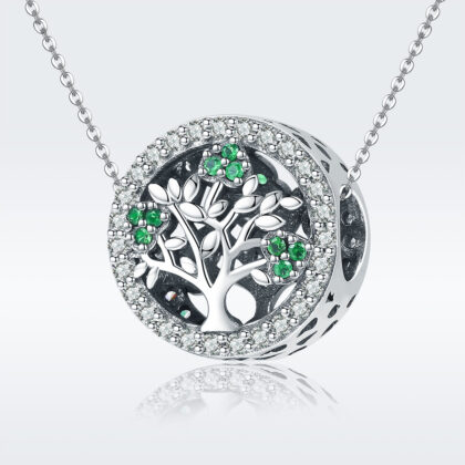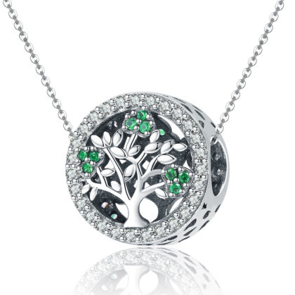 Talismanul argint 925 copacul vietii zirconiu verde este o bijuterie care nu numai că îmbină simbolismul, ci adaugă un strop de strălucire și eleganță cu pietrele zirconiu verzi și cele albe încrustate pe marginea sa. Realizat cu atenție, pandantivul prezintă modelul detaliat al Copacului Vieții, simbol al înfloririi și conexiunii.