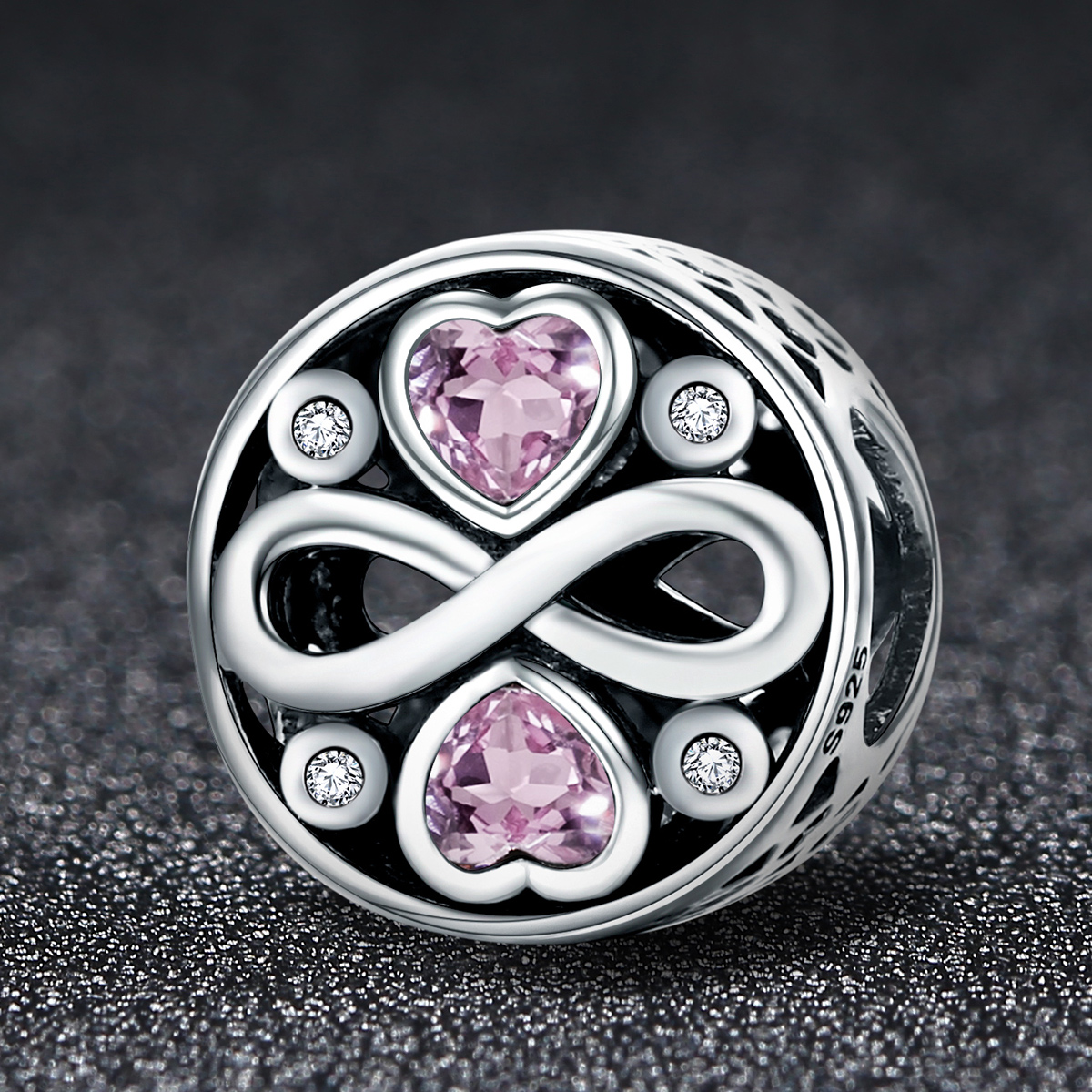 Talismanul argint 925 Infinit heart are o formă rotundă și în centrul său se află semnul infinitului, înconjurat de două inimi de culoare roz. Este o bijuterie ce exprimă iubirea eternă și legătura puternică dintre două persoane. Detaliile fine adaugă o notă de rafinament și autenticitate bijuteriei.