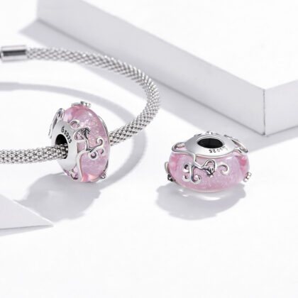 Talismanul argint 925 Pink flame emană o aură de eleganță și frumusețe. Cu nuanța sa delicată de roz, acesta adaugă un strop de feminitate și stil oricărei ținute. Pandantivul are un model deosebit, cu detalii fine care îl fac să iasă în evidență. Acest pandantiv poate să fie o expresie a stilului personal.